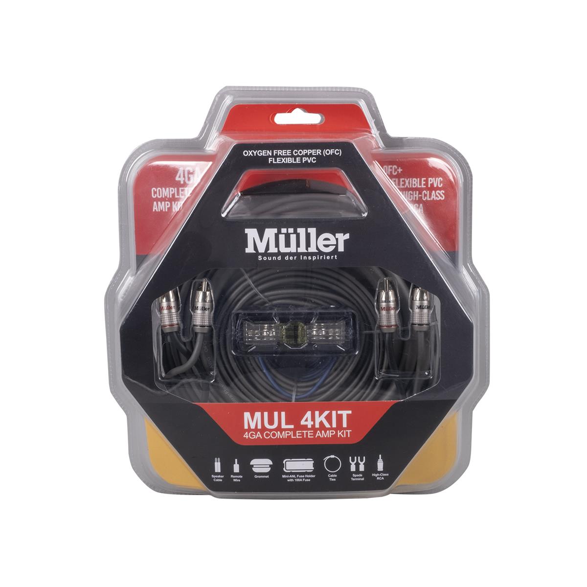 4.5MT 4GA POWER CABLE0.6MT 4GA GROUND CABLE5 MT RCA CABLE 10MT 16GA SPEAKER CABLE5MT REMOTE CABLE100A FUSEINSTALLATION EQUIPMENTS
